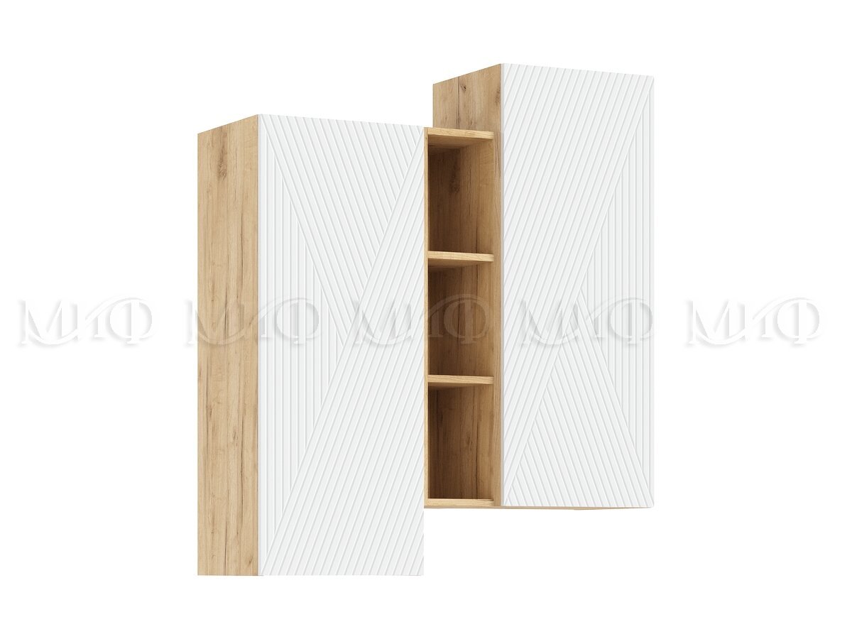 - Шкаф подвесной комбинированный Флэш Браш Вайт, Дуб Крафт