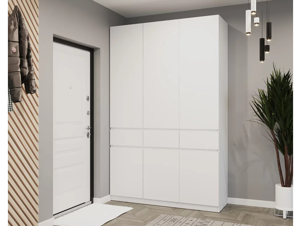 - Шкаф распашной трехстворчатый Атлант Белый шагрень