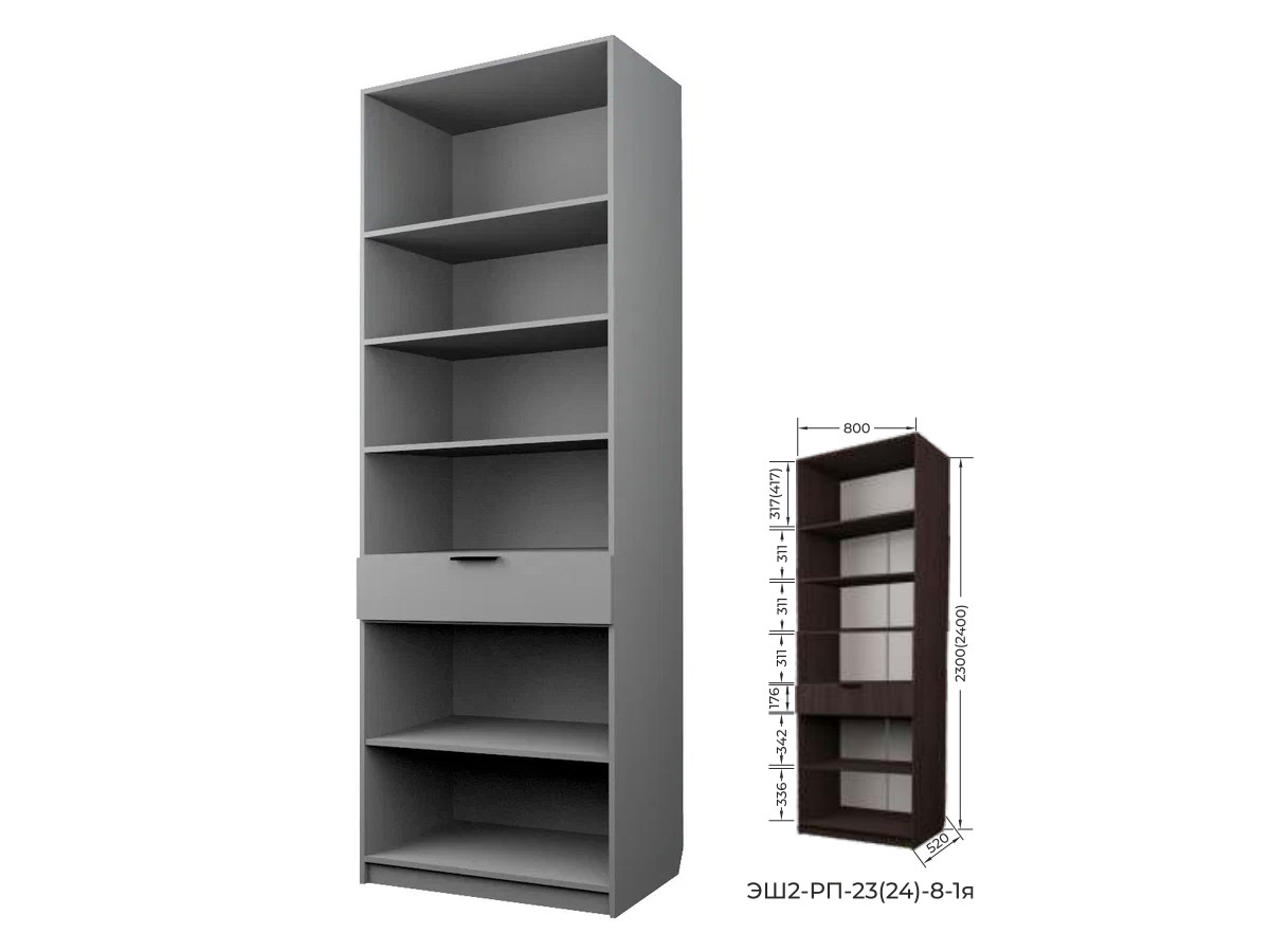 - Шкаф с 1 ящиком с полками Экон ЭШ2-РП-23-8-1я с зеркалами