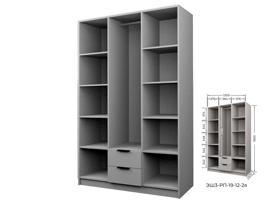 Комплект: ЭШ3-РП-19-12-2я, Шкаф с 2 ящиками + ЗС-19-2я,Зеркало для шкафов ЭШ 1900 мм