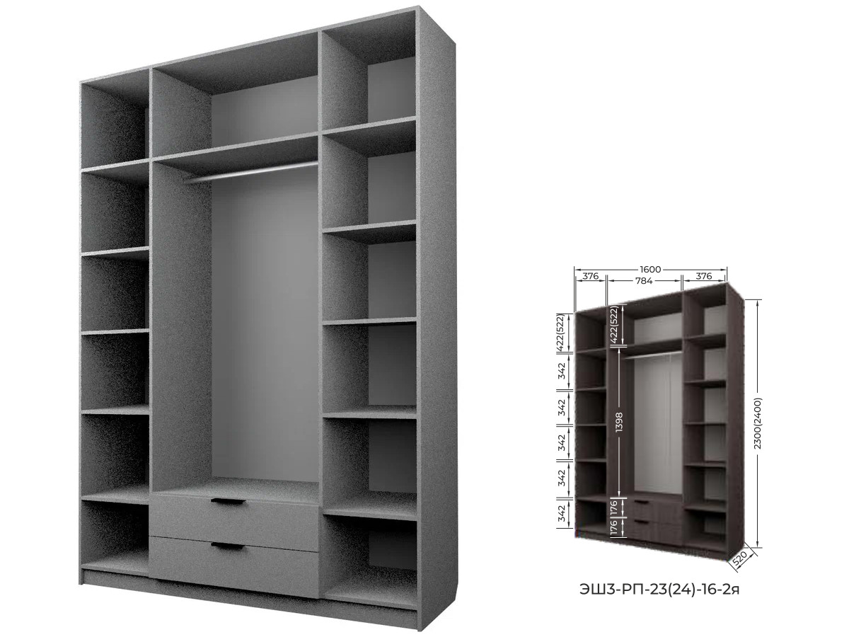 Комплект: ЭШ3-РП-24-16-2я, Шкаф с 2 ящиками + два ЗС-24-2я,Зеркало для шкафов ЭШ 2400 мм