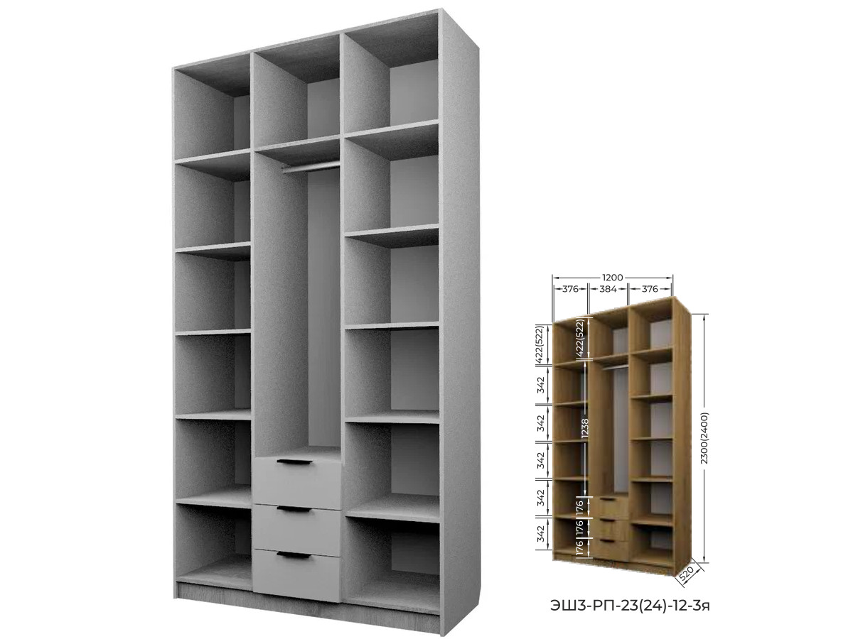 Шкаф с 3 ящиками Экон ЭШ3-РП-24-12-3я