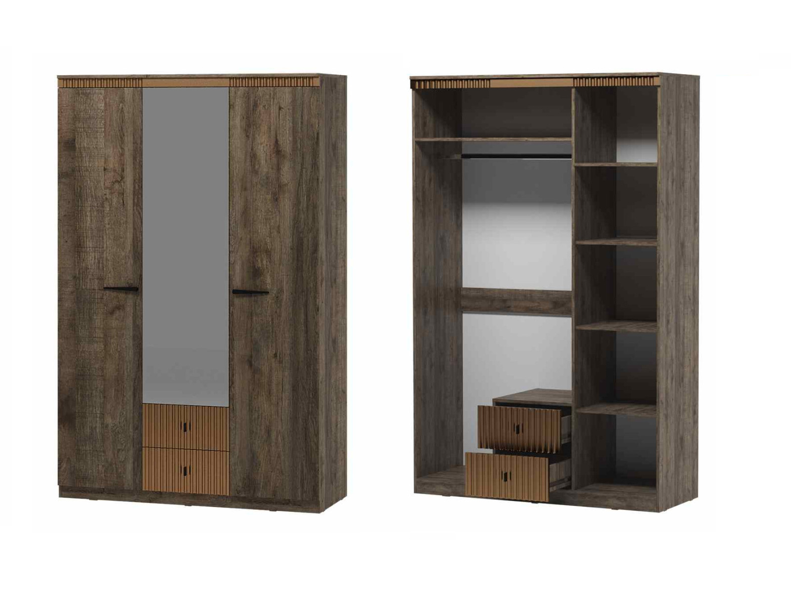 - Шкаф трехдверный № 1 с цоколем Ольга 3 дуб коми