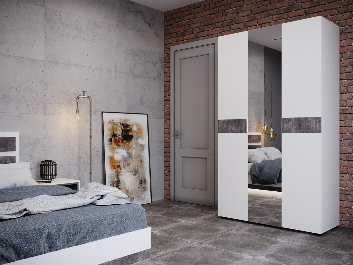 Шкаф трехдверный 1200 Лотос с зеркалом Бетон серый