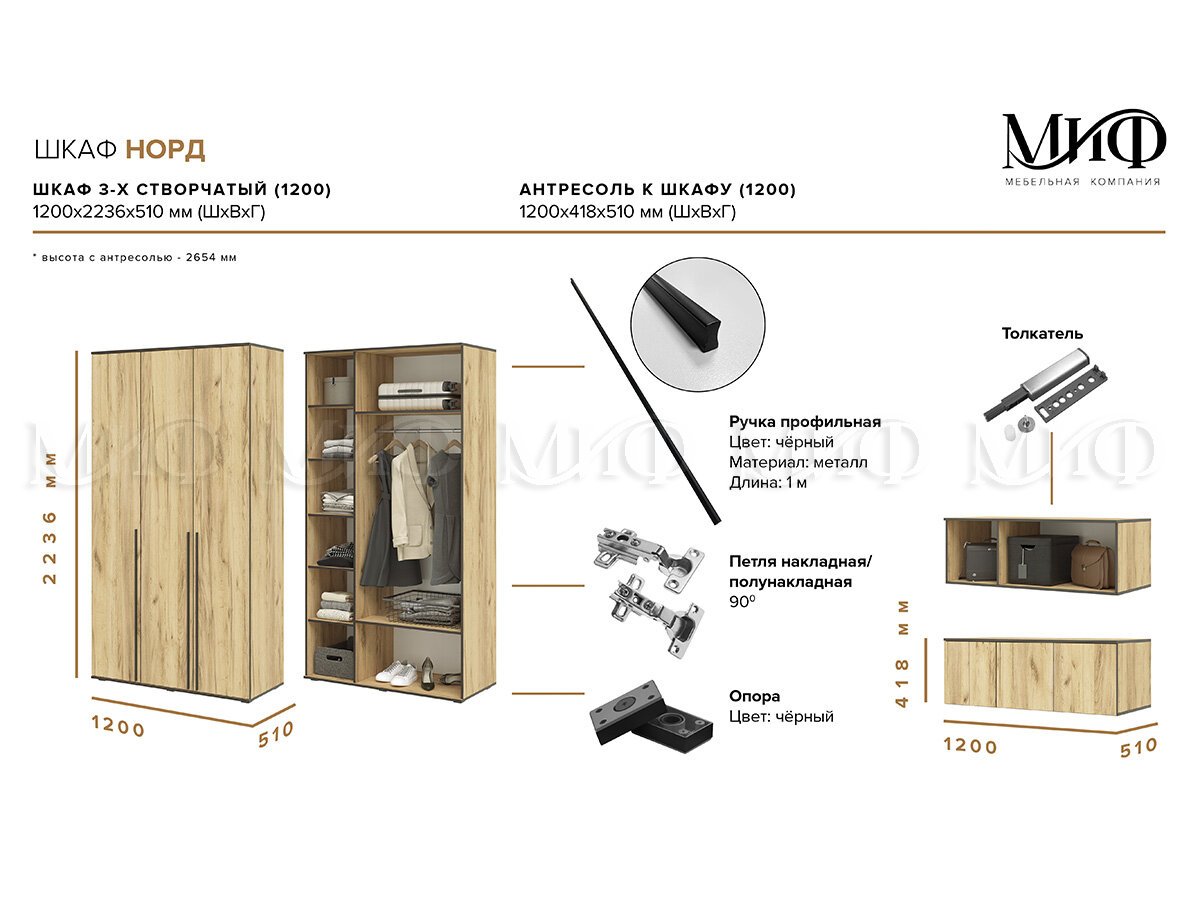 Размеры (Ш*В*Г): 1200*2236*510 мм