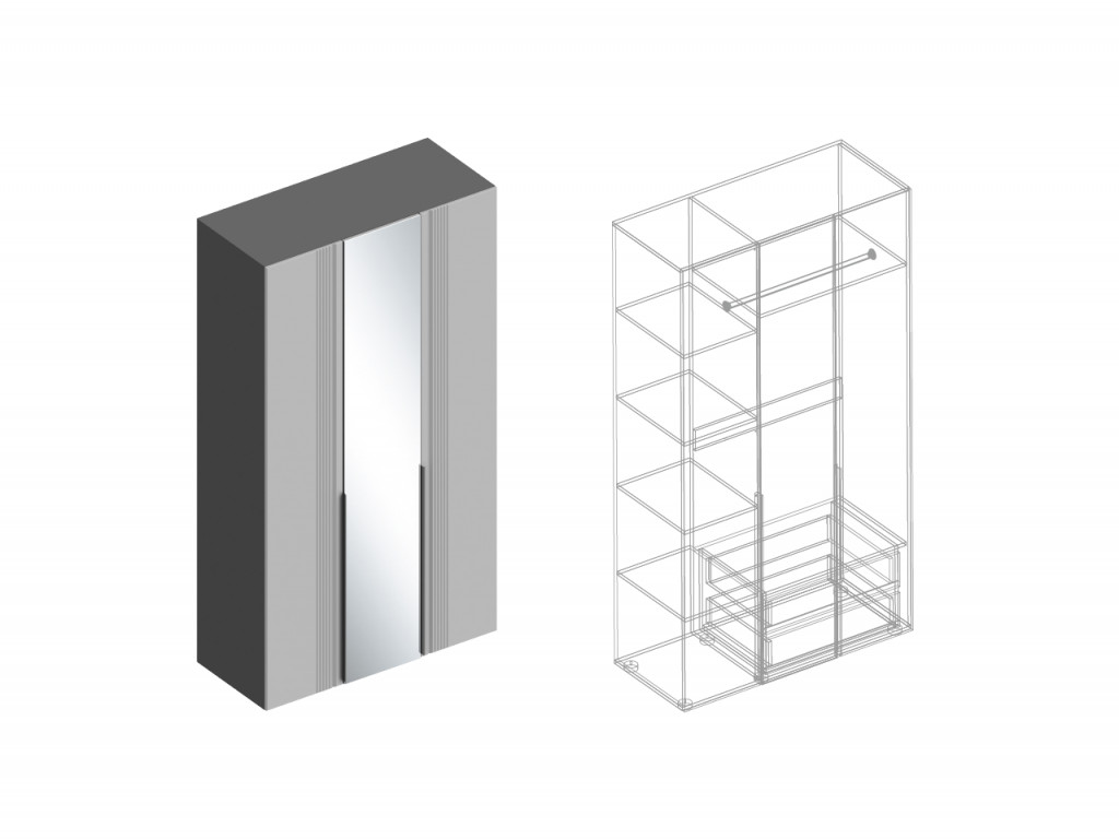 - Шкаф Вита 3-створки с зеркалом тёмно серый лофт