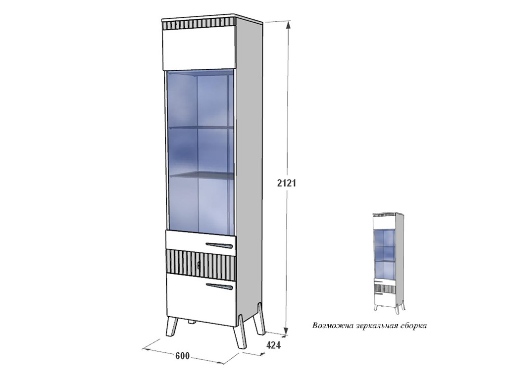 - Шкаф витрина пенал с ножками Ольга 3 дуб делано