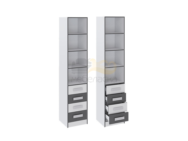 Шкаф декорирован серой кромкой. Ручки: пластик белый.