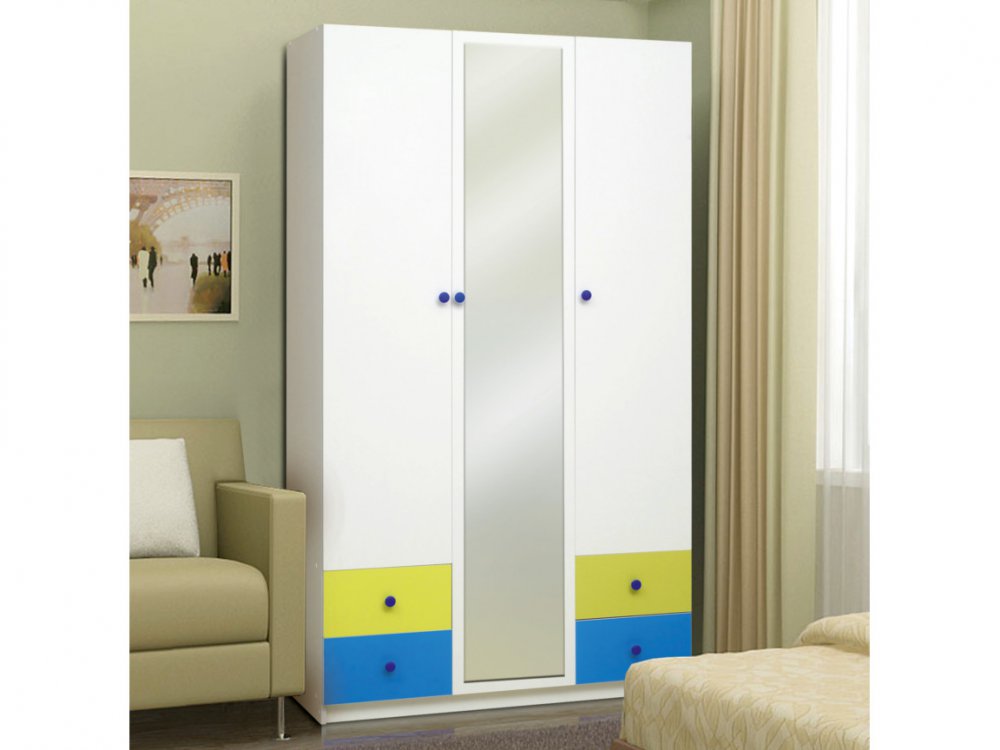 Шкаф 3-х дверный с ящиками и зеркалом Радуга