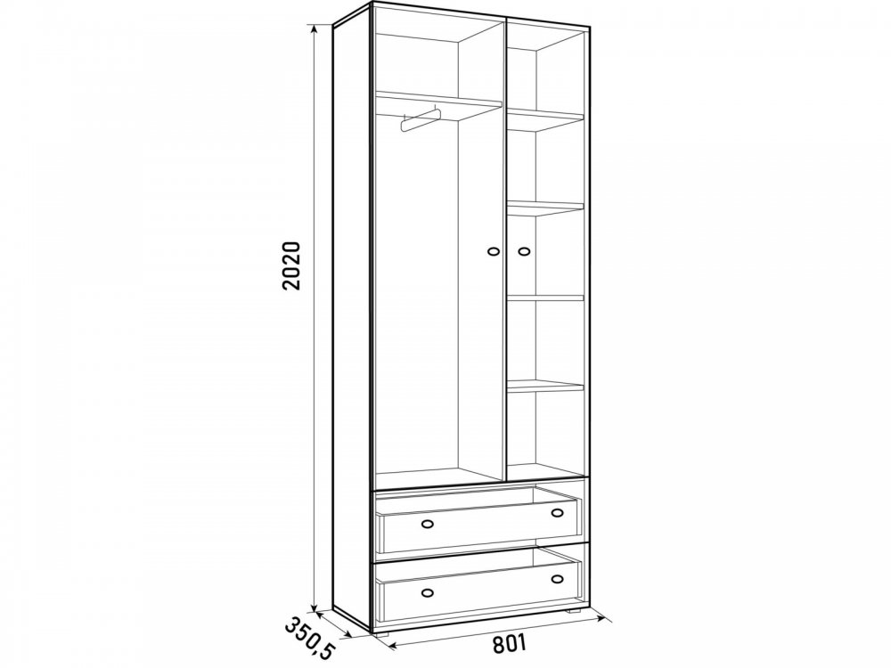 - Шкаф ДМ 800 с 2 ящиками дуб млечный-венге