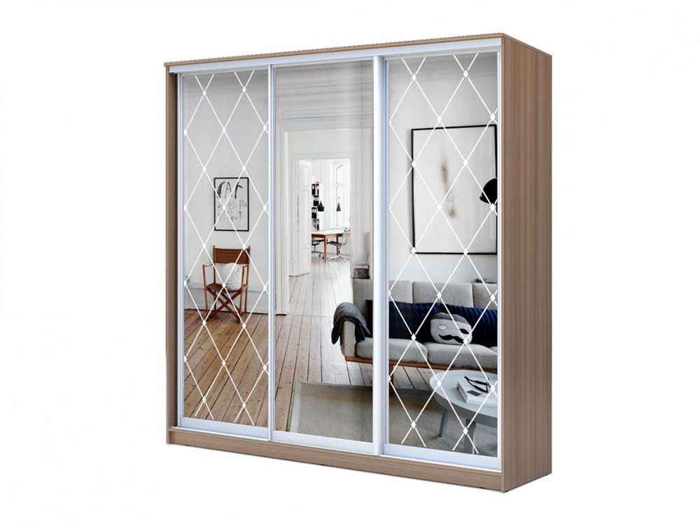 - 1 дверь Зеркало + 2 двери Зеркало с пескоструйной обработкой
