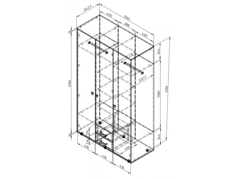 Габариты (ШхВхГ) 1300*2160*550 мм
