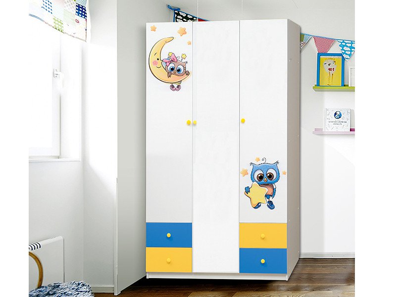 Шкаф трехдверный с ящиками и фотопечатью Совята 3.2