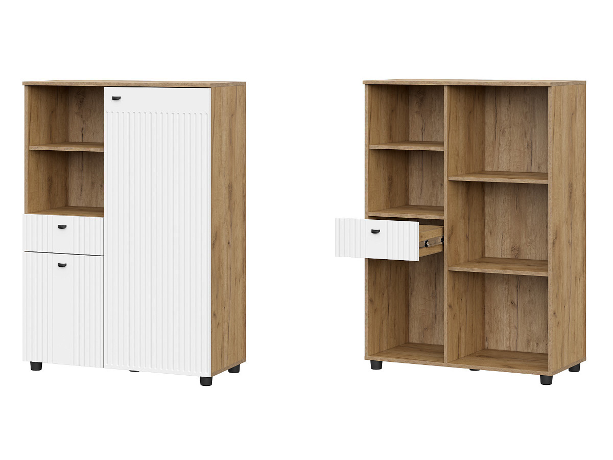 - Тумба многофункциональная Милан Дуб Золотой/Белый матовый
