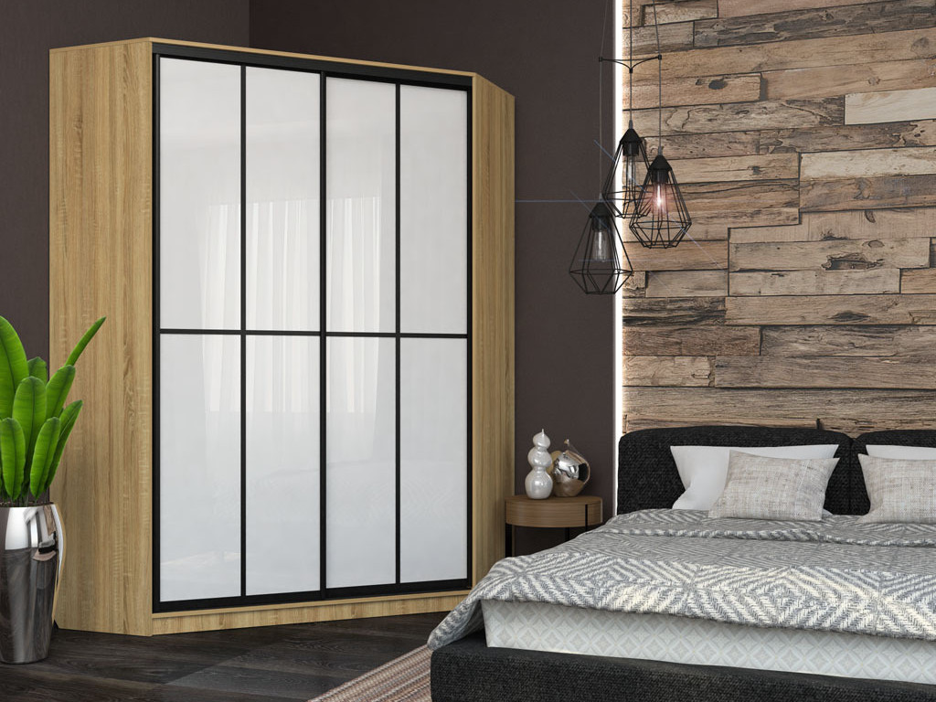 - Угловой шкаф-купе Лофт фасад МДФ белый глянец +