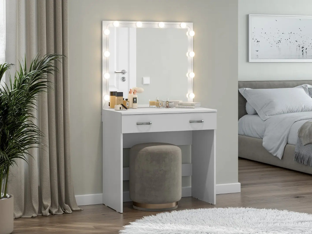 - Стол туалетный Ронда СТ-01 с подсветкой белое дерево