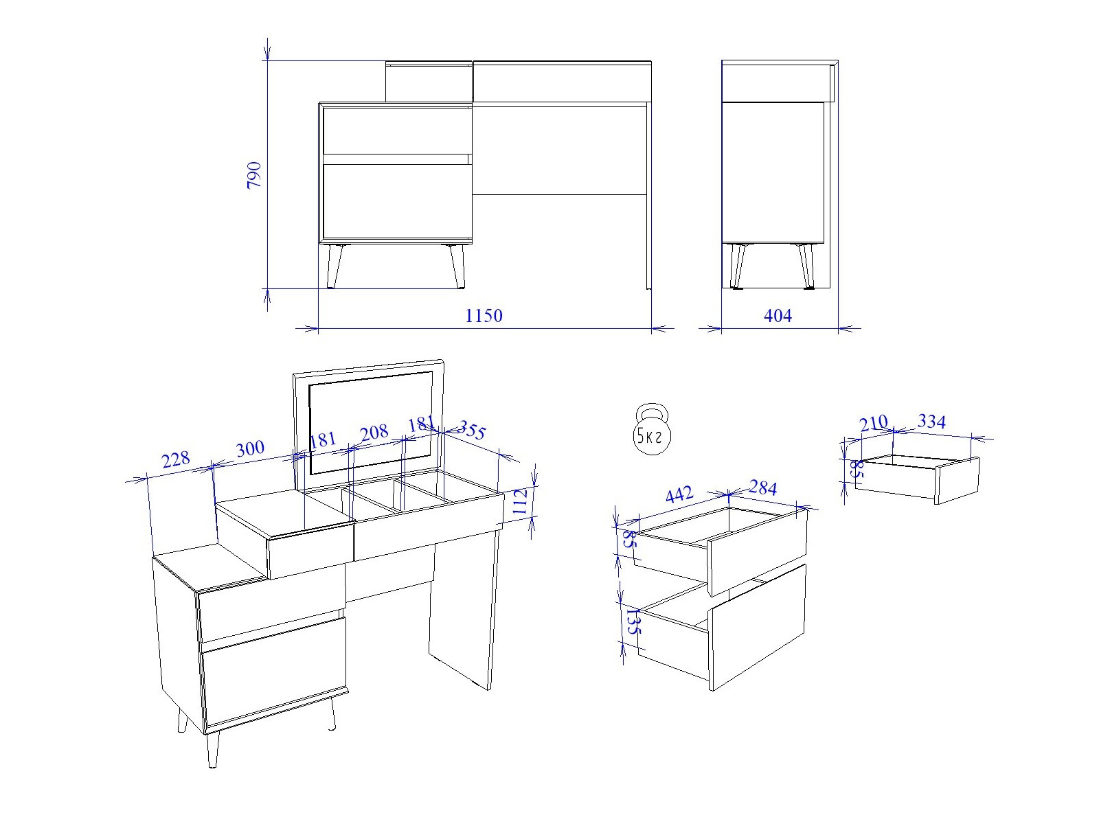 Материал: ЛДСП, МДФ, подъёмная крышка с зеркалом